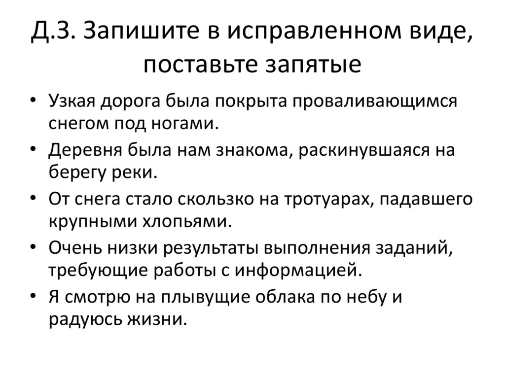 1. Д.З. Запишите в исправленном виде, поставьте запятые