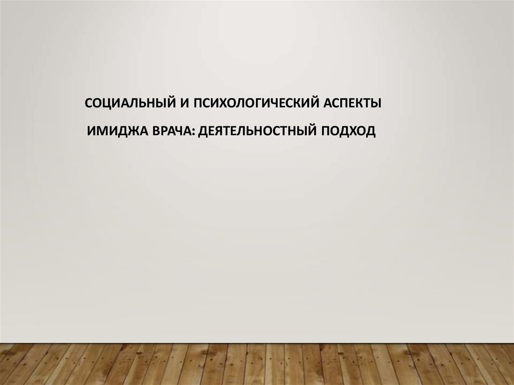 СОЦИАЛЬНЫЙ И ПСИХОЛОГИЧЕСКИЙ АСПЕКТЫИМИДЖА ВРАЧА: ДЕЯТЕЛЬНОСТНЫЙ ПОДХОД