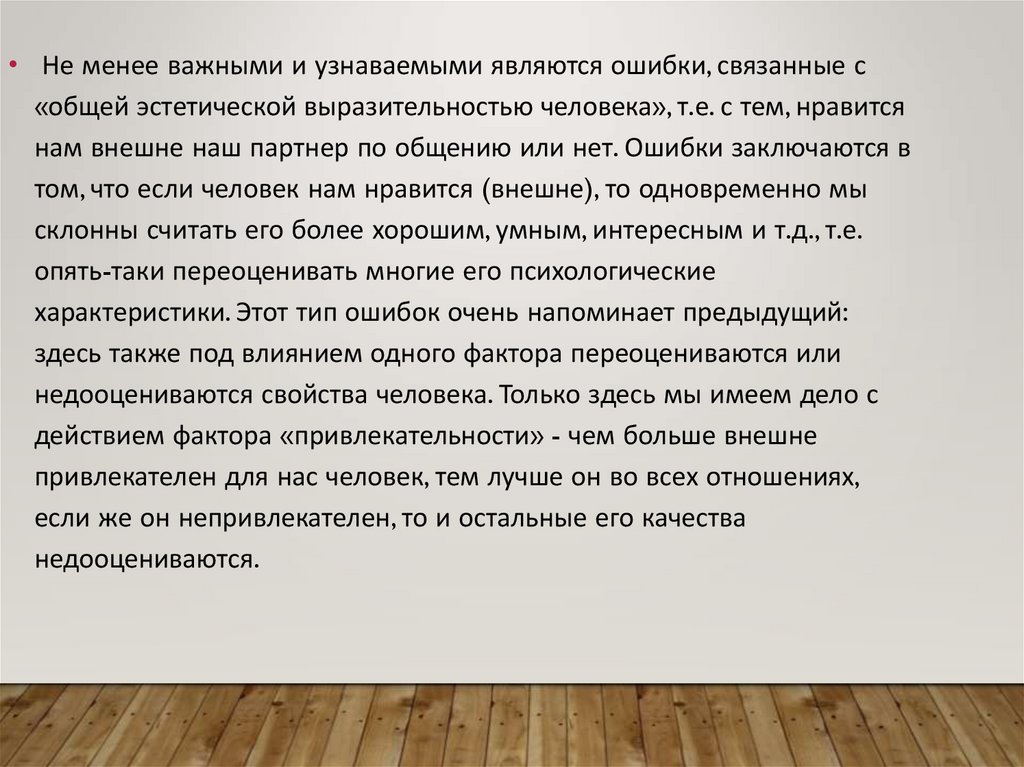 • Важнейшим фактором, влияющим на правильностьвосприятия и понимания людьми друг друга, является