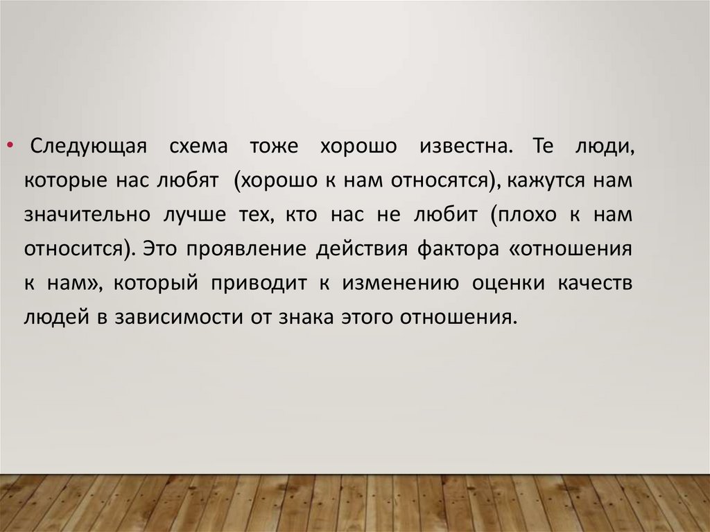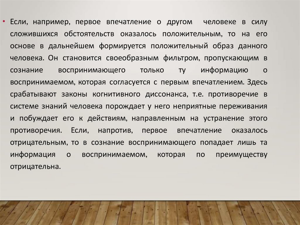 • Если, например, первое впечатление о другом человеке в силусложившихся обстоятельств оказалось положительным, то на его