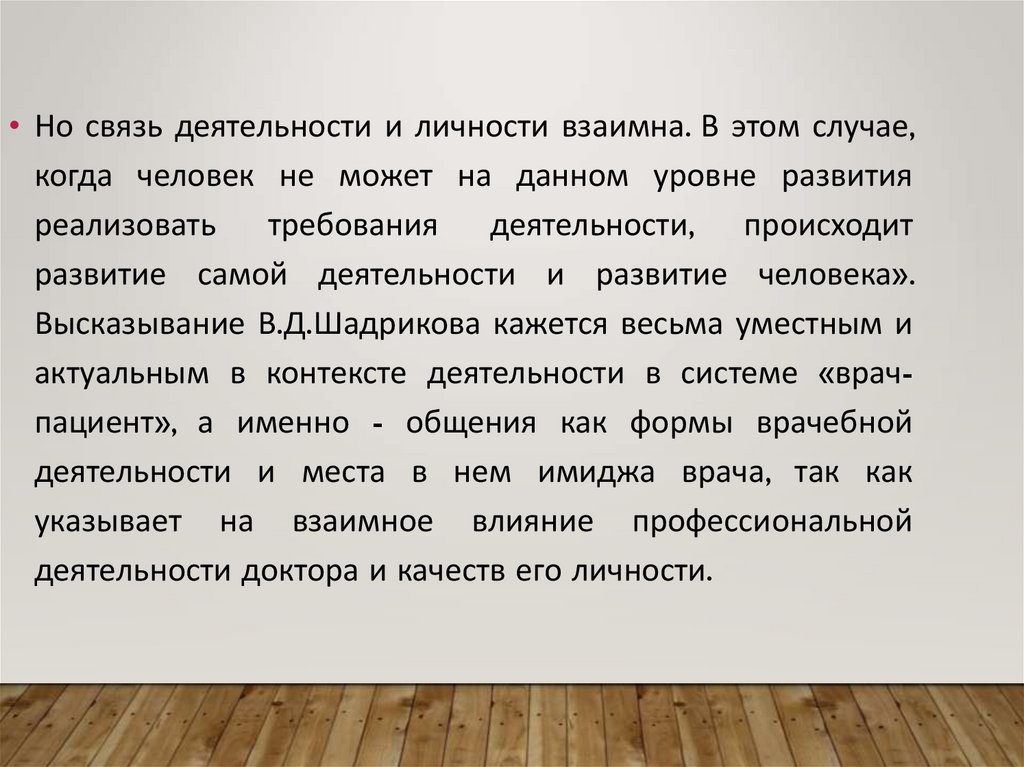 Высказывание В.Д.Шадрикова кажется весьма уместным и