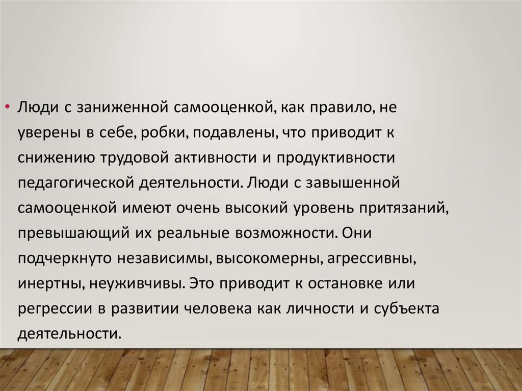 • Но связь деятельности и личности взаимна. В этом случае,когда человек не может на данном уровне развития