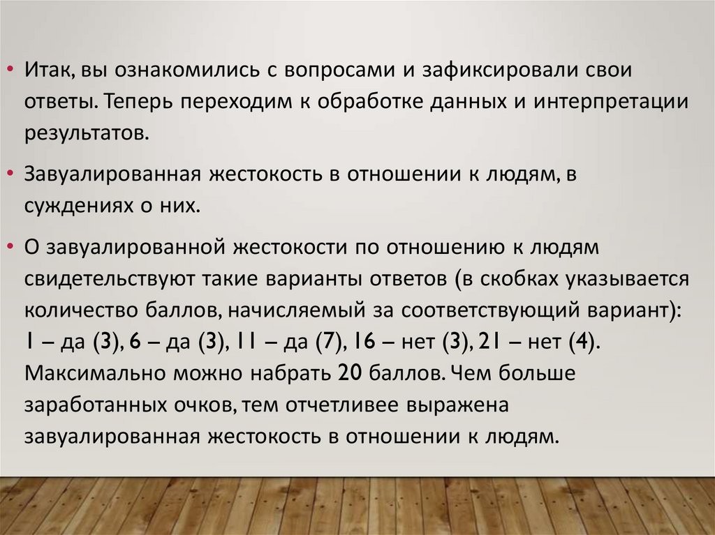 • Итак, вы ознакомились с вопросами и зафиксировали своиответы. Теперь переходим к обработке данных и интерпретации