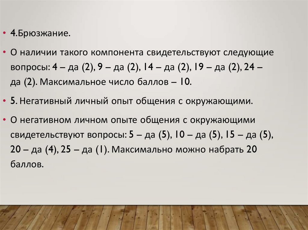 вопросы: 4 – да (2), 9 – да (2), 14 – да (2), 19 – да (2), 24 –