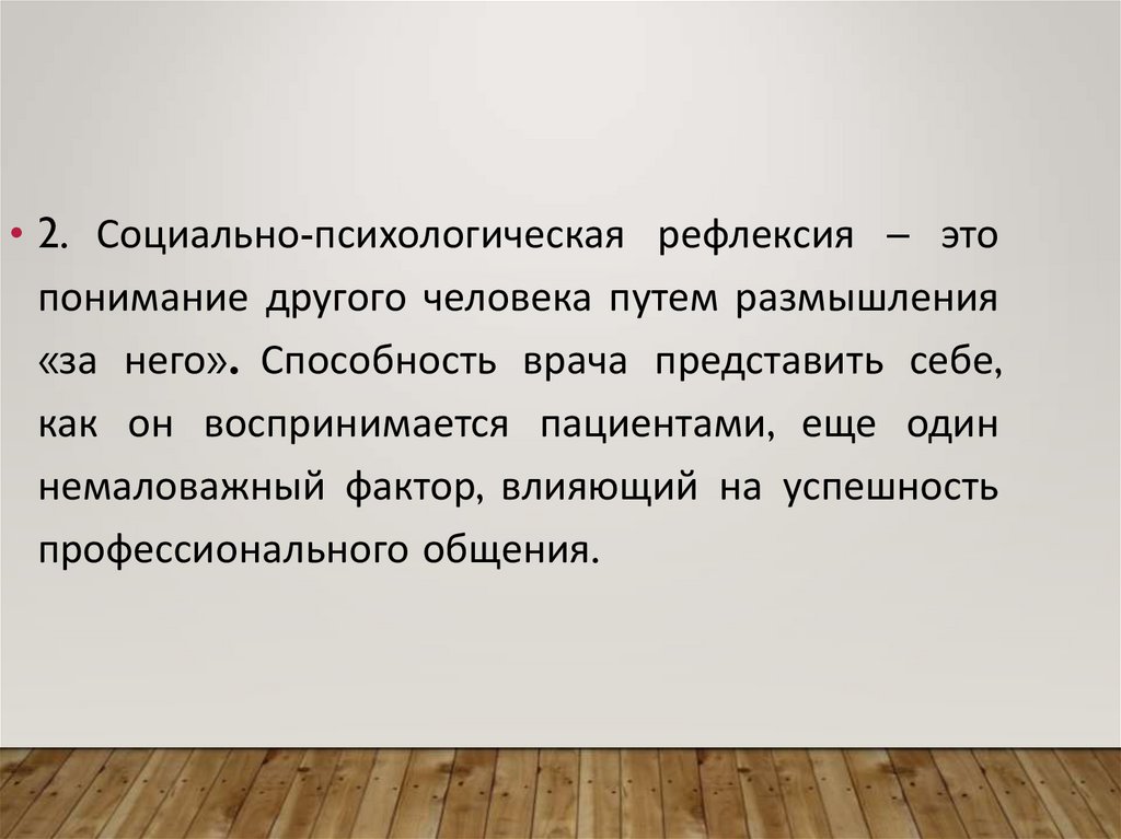 • 2. Социально-психологическая рефлексия – этопонимание другого человека путем размышления