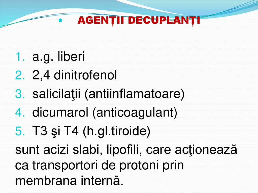 Decuplarea produselor de oxidare şi fosforilare, principalii agenţi decuplanţi. Rolul
