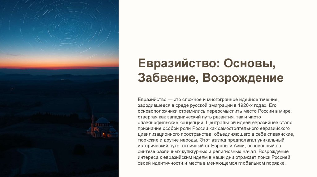 суверенитета, видя в евразийском единстве ключ к глобальной стабильности и противодействию