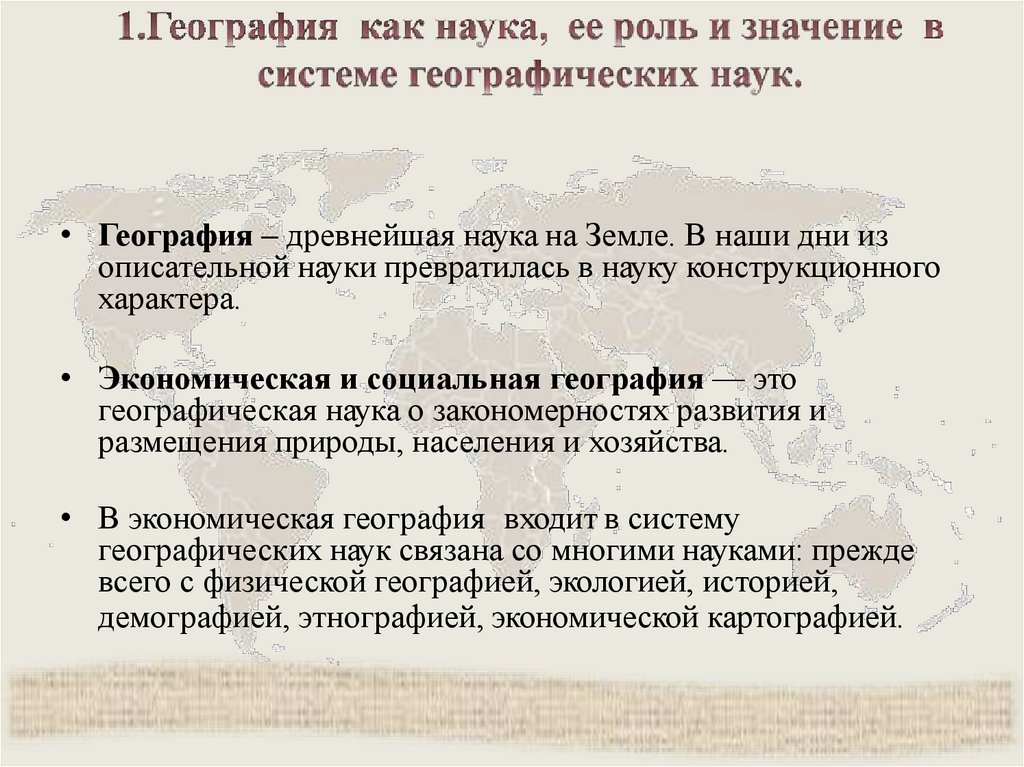 • География – древнейшая наука на Земле. В наши дни изописательной науки превратилась в науку конструкционного