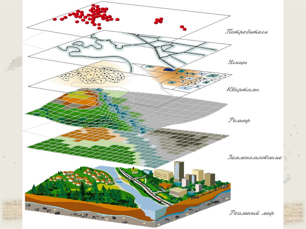 Вся исходная информация хранится вотдельных слоях в цифровом виде на