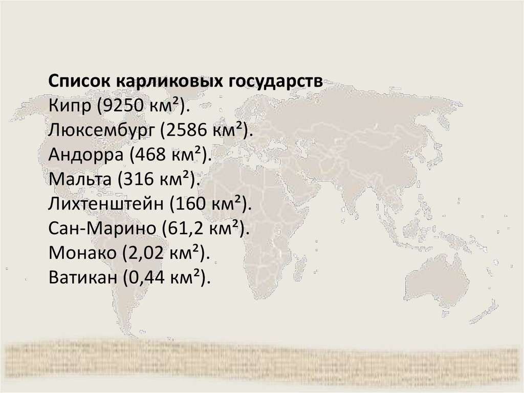 государства –«карлики», островные государства.