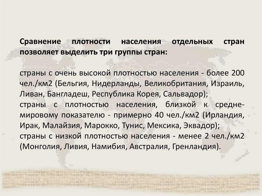 Сравнение плотности населения отдельныхпозволяет выделить три группы стран: