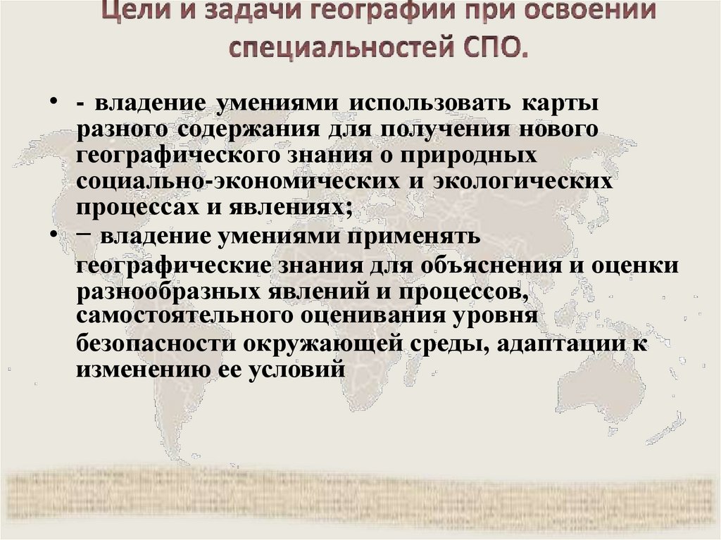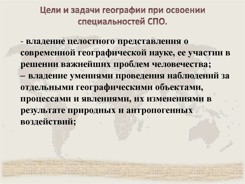 - владение целостного представления осовременной географической науке, ее участии в