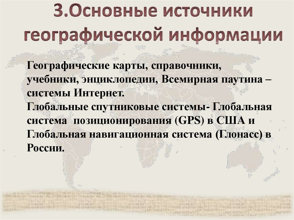 Географические карты, справочники,учебники, энциклопедии, Всемирная паутина –