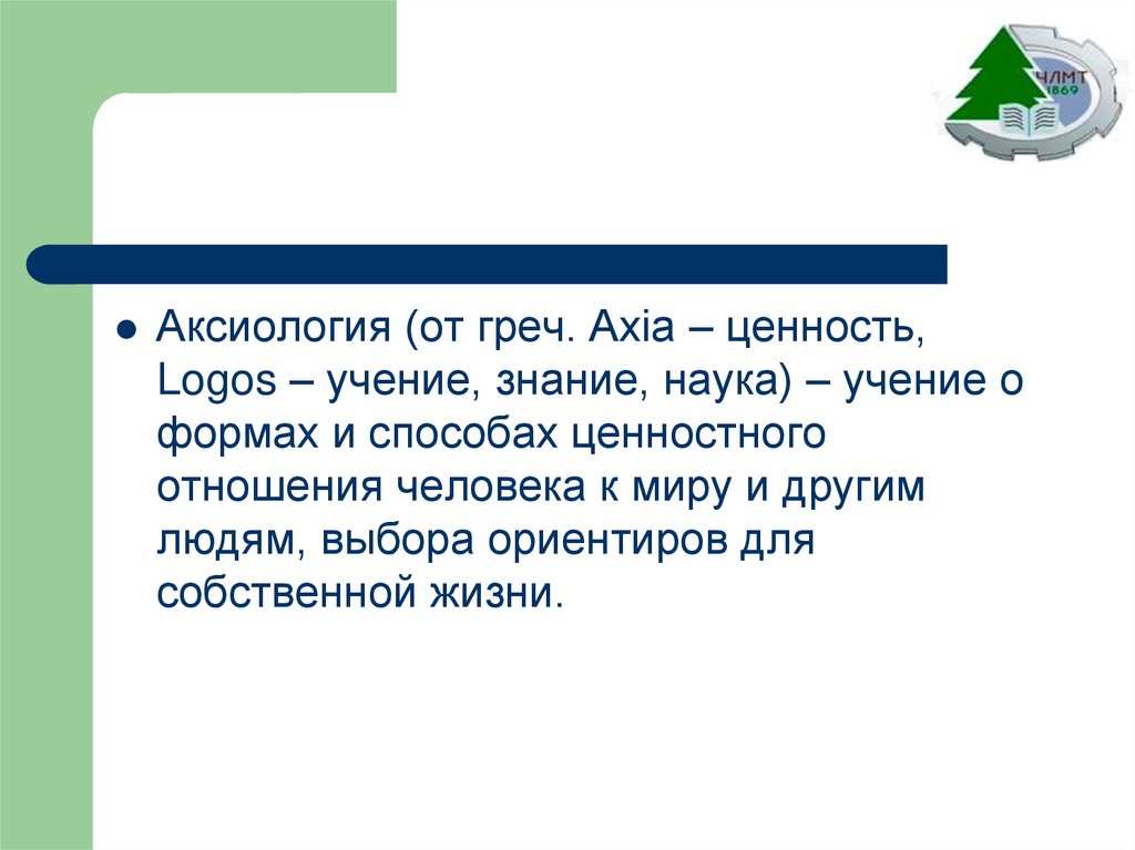 Аксиология (от греч. Axia – ценность,Logos – учение, знание, наука) – учение о