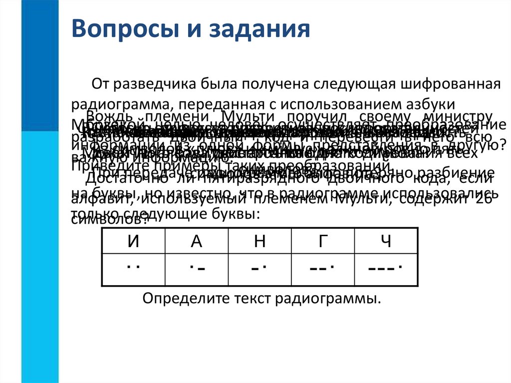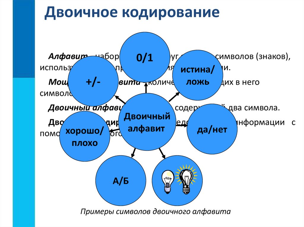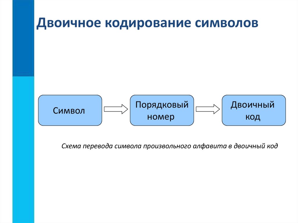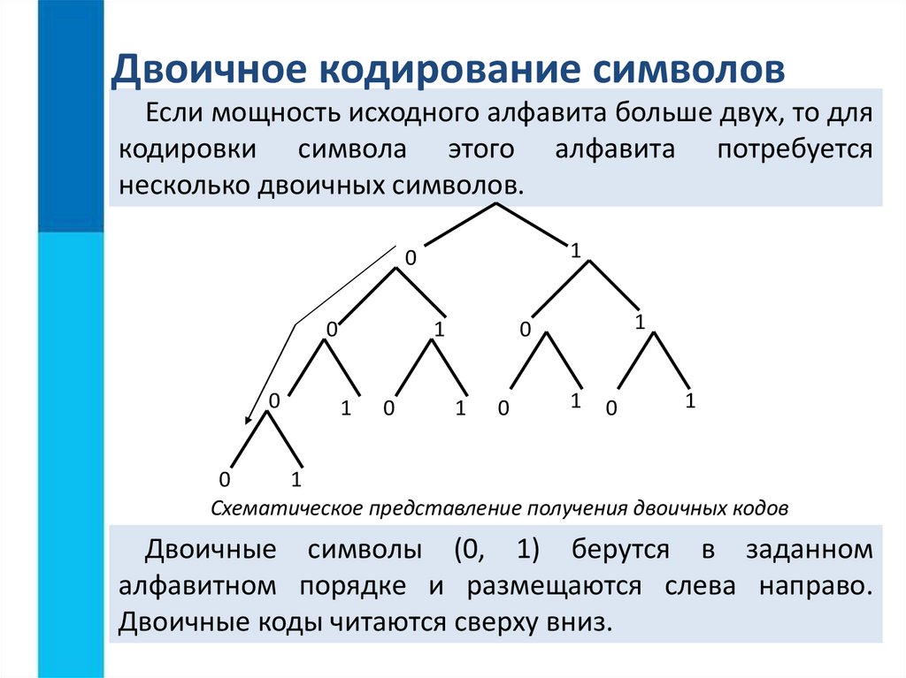 Двоичное кодирование символовЕсли мощность исходного алфавита больше двух, то для