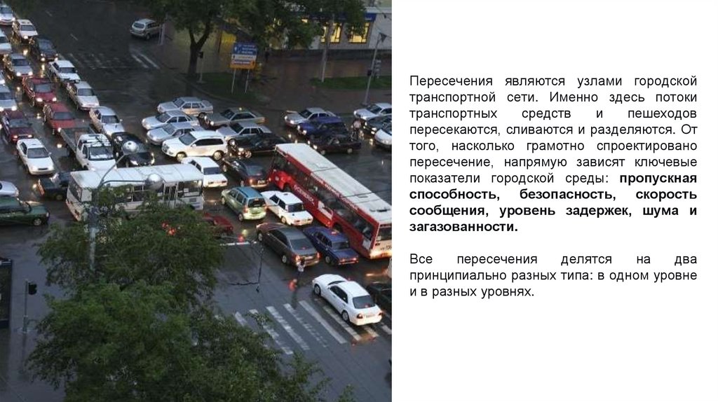 Пересечения являются узлами городскойтранспортной сети. Именно здесь потоки