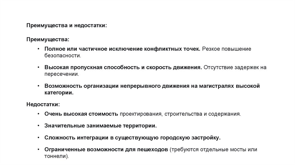 • Ограниченные возможности для пешеходов (требуются отдельные мосты или