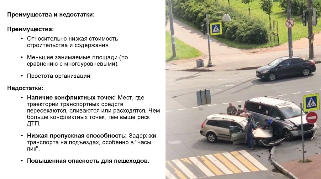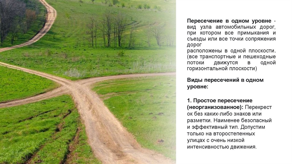 Пересечение в одном уровне вид узла автомобильных дорог,при котором все примыкания и