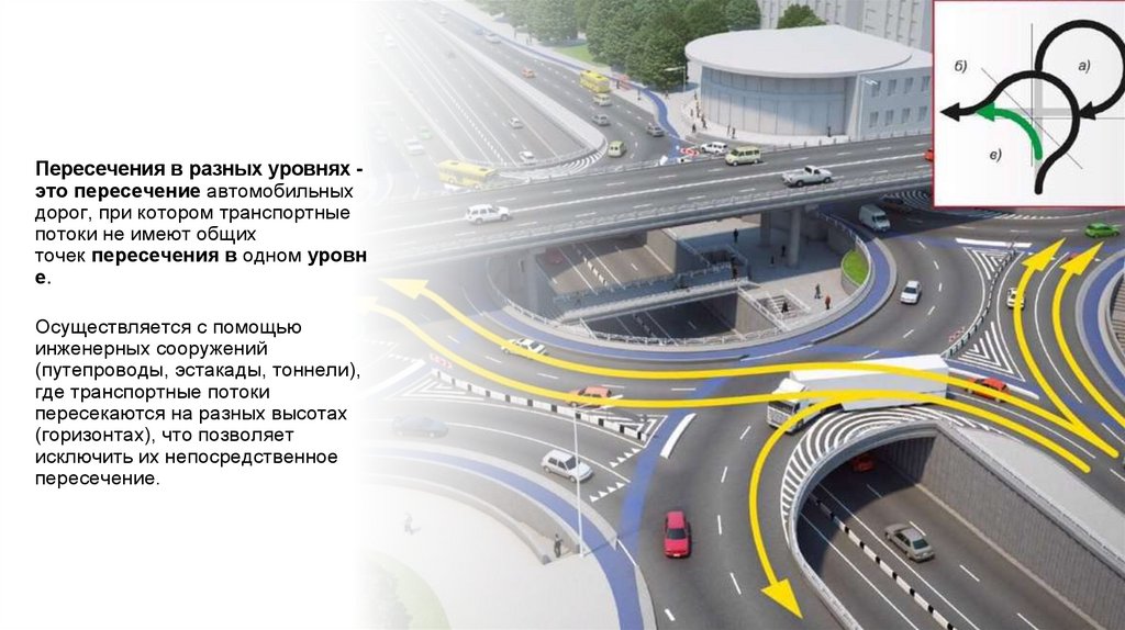 Пересечения в разных уровнях это пересечение автомобильныхдорог, при котором транспортные