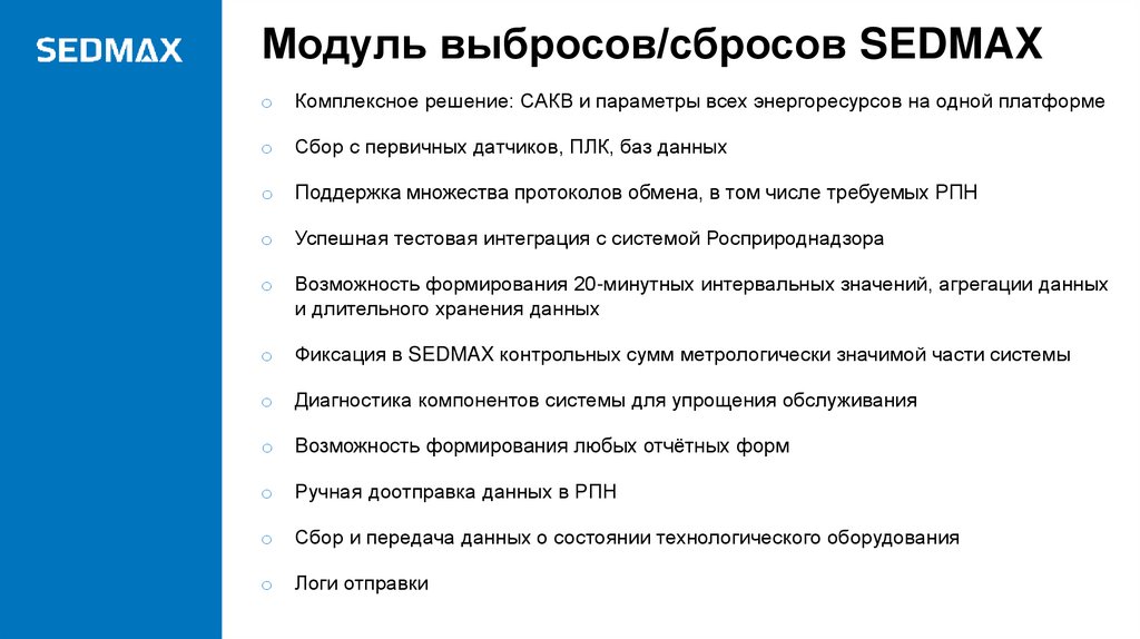 1. Платформа SEDMAX для контроля выбросов промпредприятия и интеграции с реестром РПН