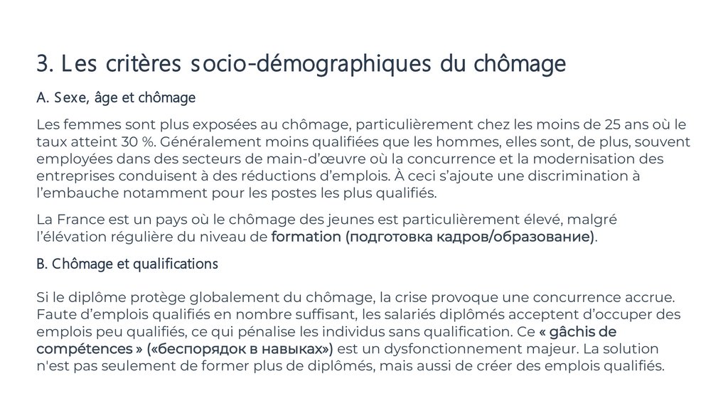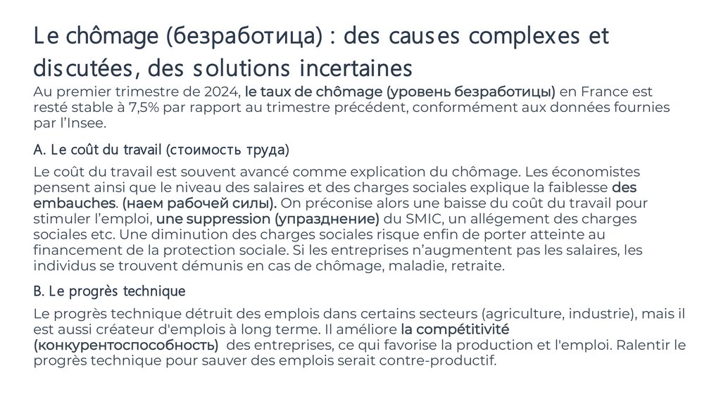 L e chômage (безработица) : des caus es complex es etdis cutées , des s olutions incertaines