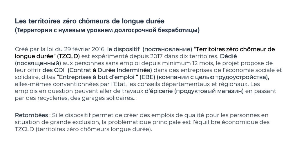 Les territoires zéro chômeurs de longue durée(Территории с нулевым уровнем долгосрочной безработицы)