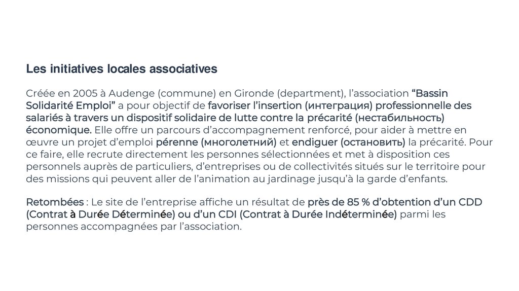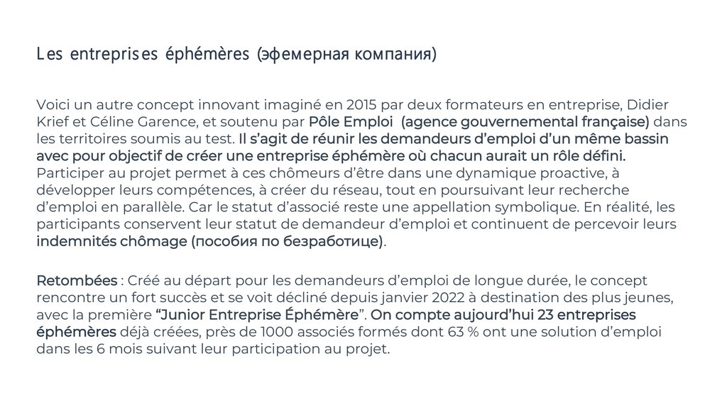 solidaire, dites “Entreprises à but d’emploi “ (EBE) (компании с целью трудоустройства),