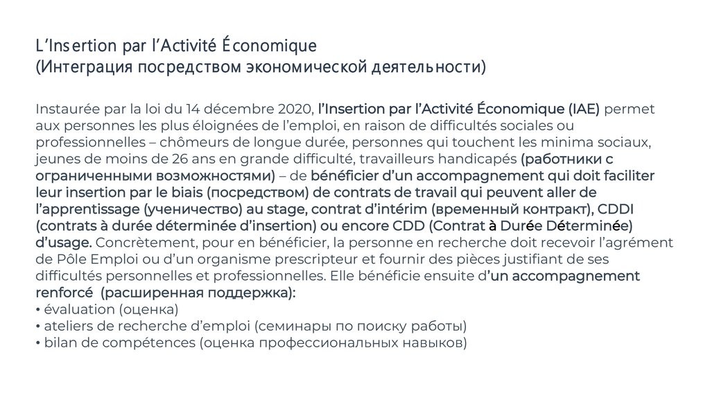 L’Ins ertion par l’Activité É conomique(Интеграция посредством экономической деятель ности)