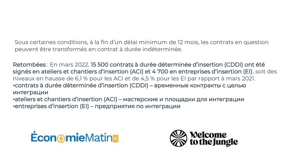 •contrats à durée déterminée d’insertion (CDDI) – временные контракты с целью