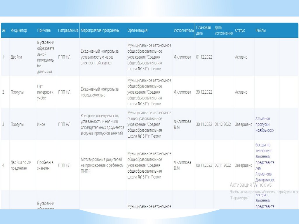 4. при выбывании ребенка ГР СОП сообщить Никитиной Н.Н. И