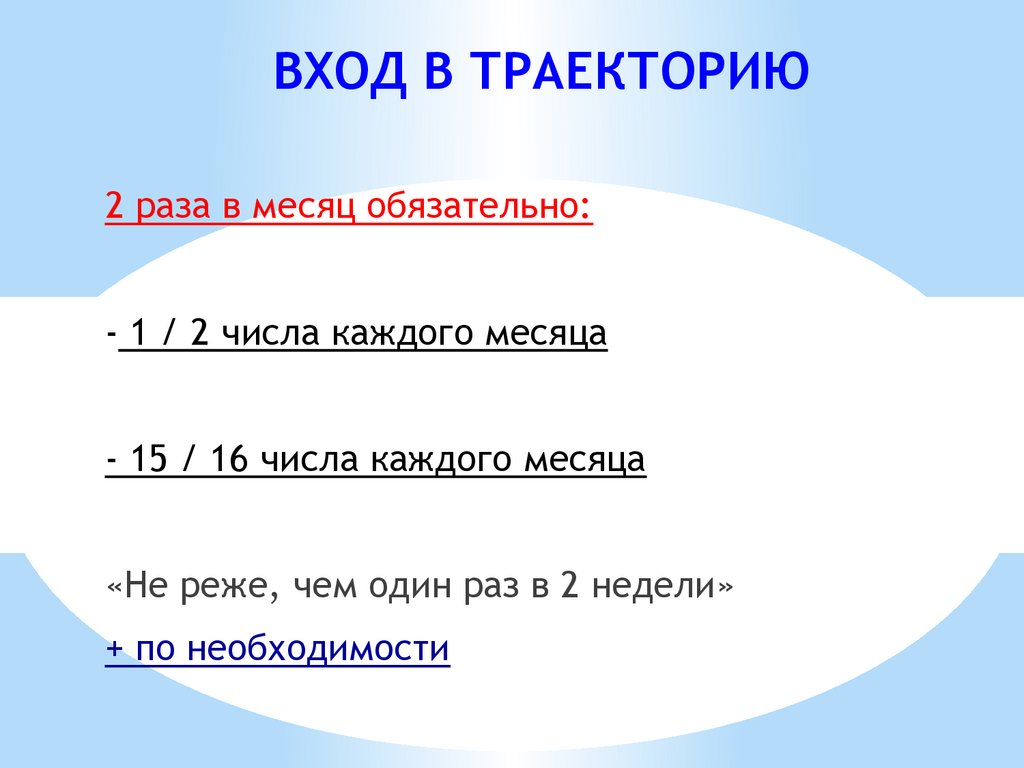 ВХОД В ТРАЕКТОРИЮ2 раза в месяц обязательно: