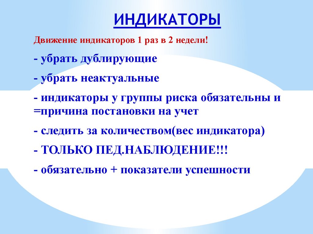 ИНДИКАТОРЫДвижение индикаторов 1 раз в 2 недели!
