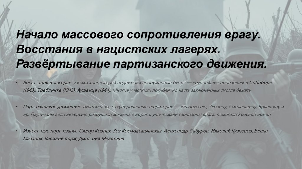 Начало массового сопротивления врагу.Восстания в нацистских лагерях.