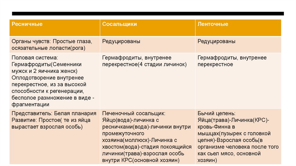 • Тело плоское, трехслойные(эктодерма, мезодерма, энтодерма)• Двухстороняя симетрия(тело делят только в одной плоскости, выделяется перед зад, верх низ.)