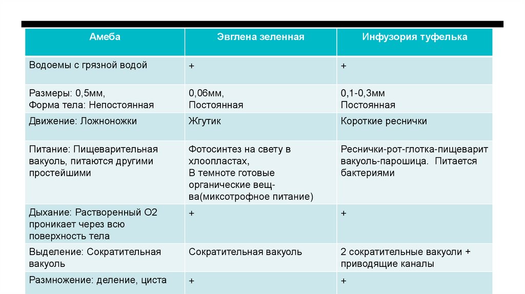 • Питание у большинства – гетеротрофное(фагоцитоз и пиноцитоз)• Выделение с помощью сократительных вакуолей