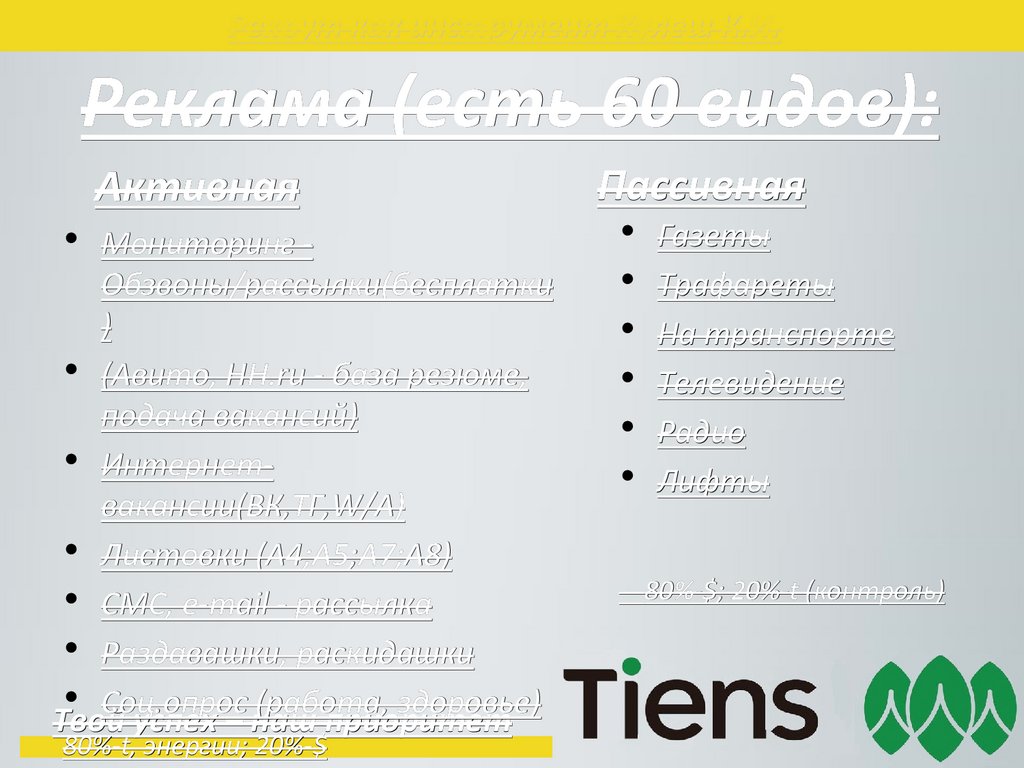 Реклама (есть 60 видов):