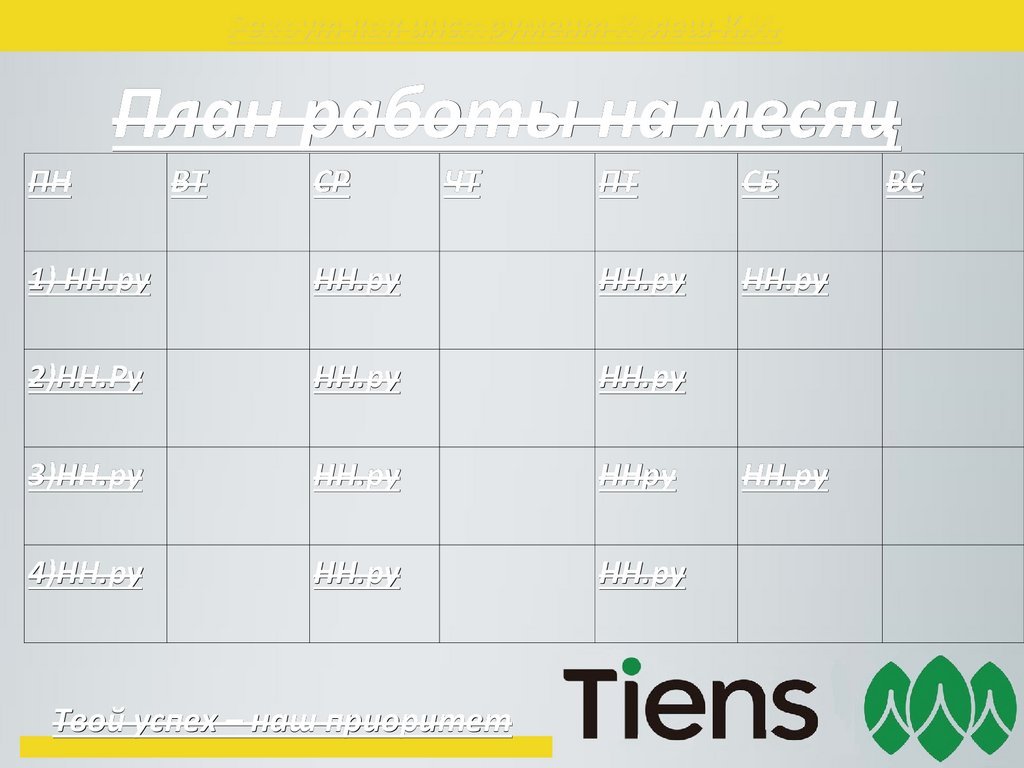 План работы на месяц