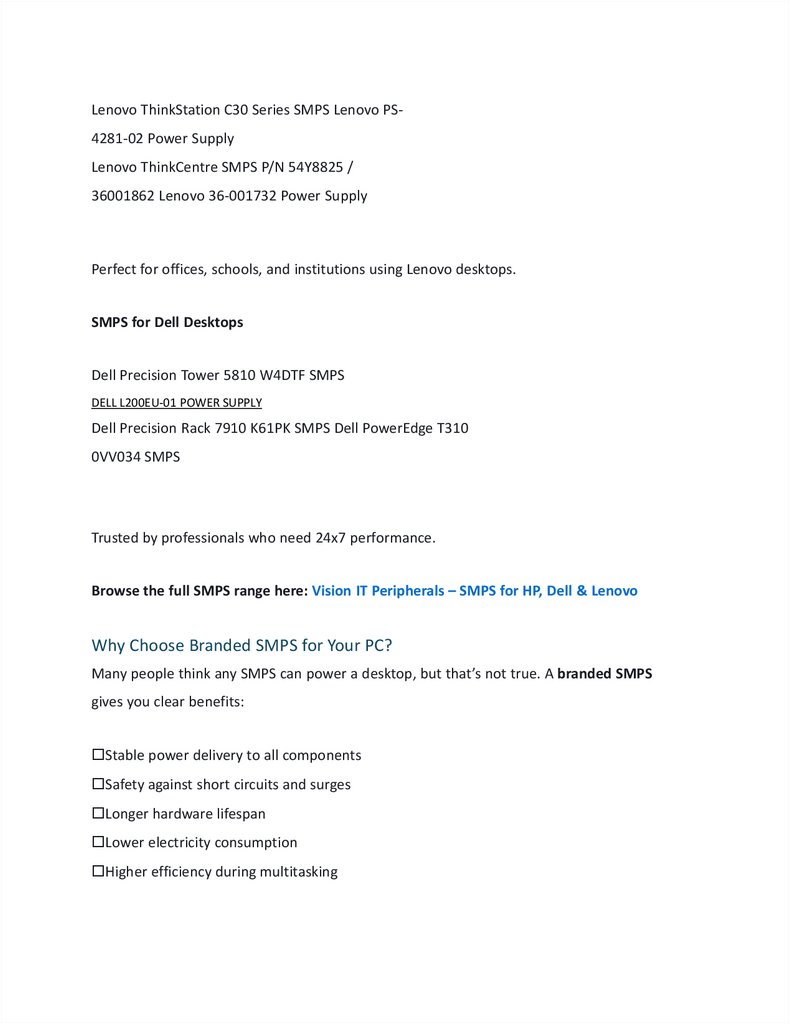 investment. HP, Dell, and Lenovo desktops perform best with genuine branded SMPS.