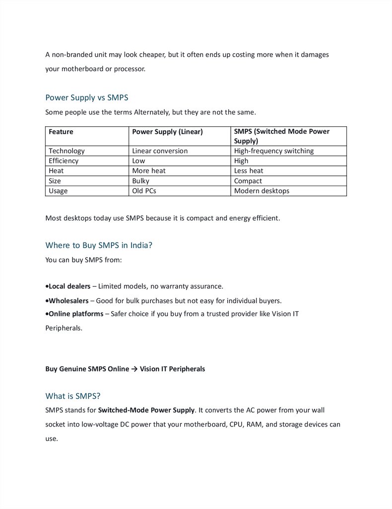 Buy Genuine SMPS Online → Vision IT Peripherals