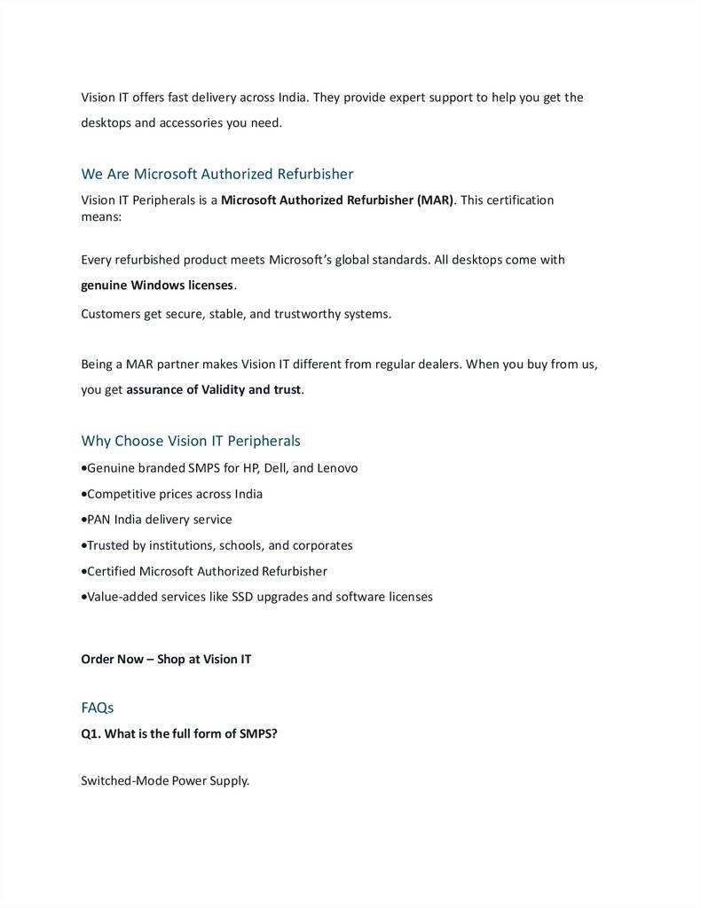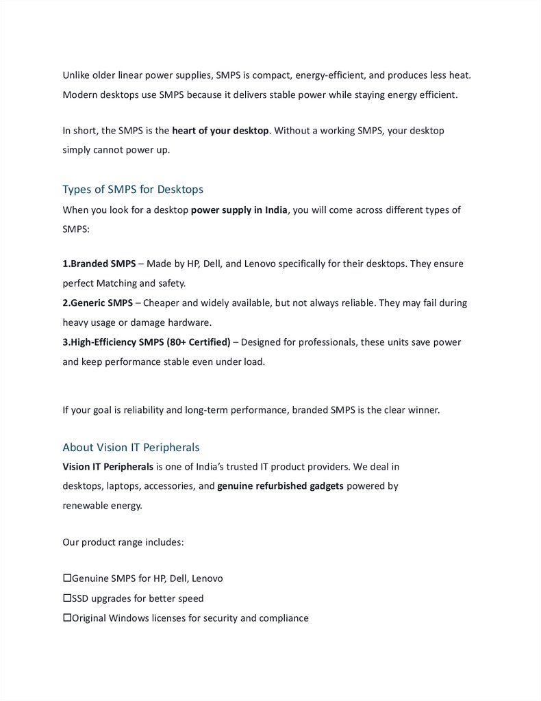 At Vision IT Peripherals, you can find real SMPS units for HP, Dell, and Lenovo desktops. We