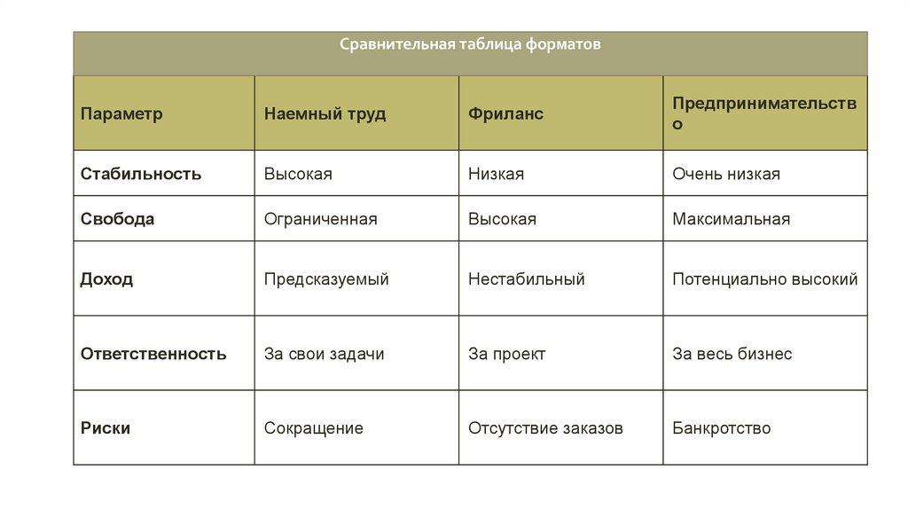 обоснованием выбора формата работы (наем, фриланс,