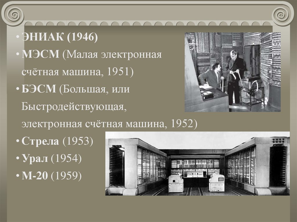 ЭВМ: на электронных лампах (40-е-начало 50-х годов), дискретных