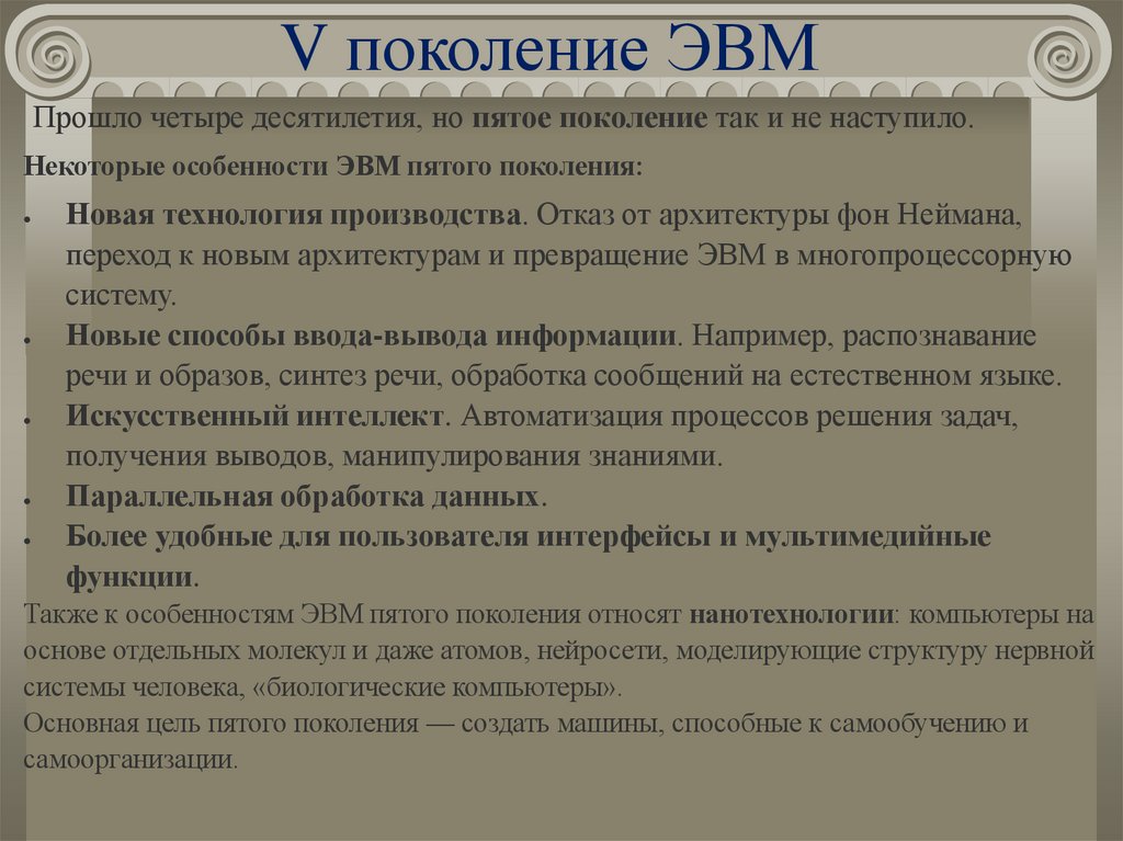 V поколение ЭВМПрошло четыре десятилетия, но пятое поколение так и не наступило.