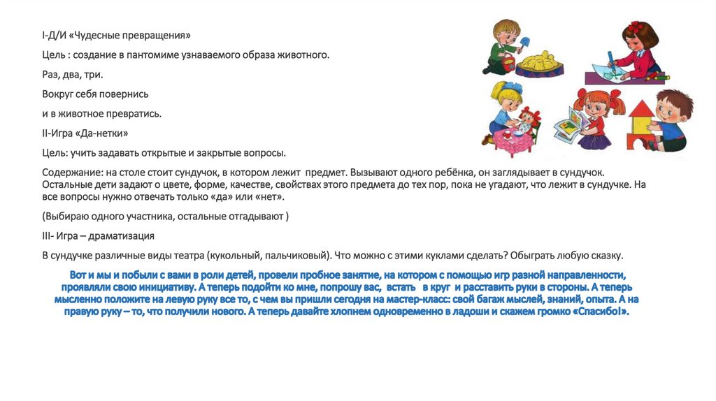 от взрослого, мобилизуя имеющийся опыт, знания, используя