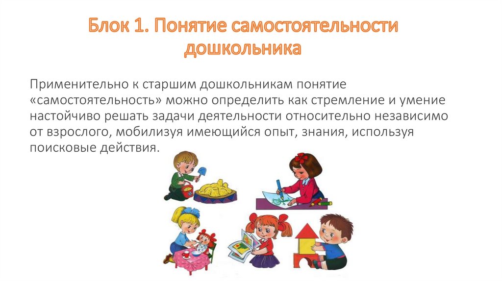 Применительно к старшим дошкольникам понятие«самостоятельность» можно определить как стремление и умение