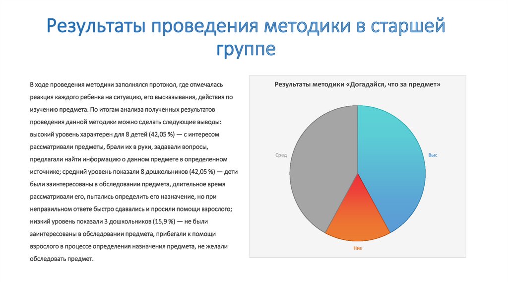 источнике; средний уровень показали 8 дошкольников (42,05 %) — дети