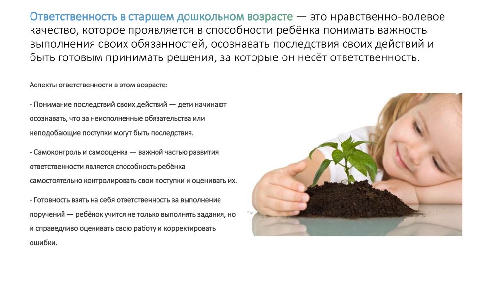Аспекты ответственности в этом возрасте: