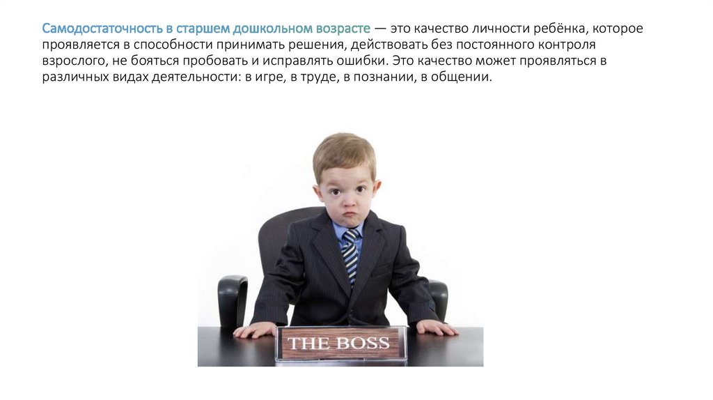 — это качество личности ребёнка, котороепроявляется в способности принимать решения, действовать без постоянного контроля