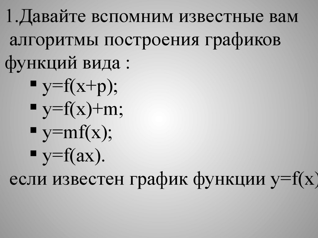 1.Давайте вспомним известные вамалгоритмы построения графиков
