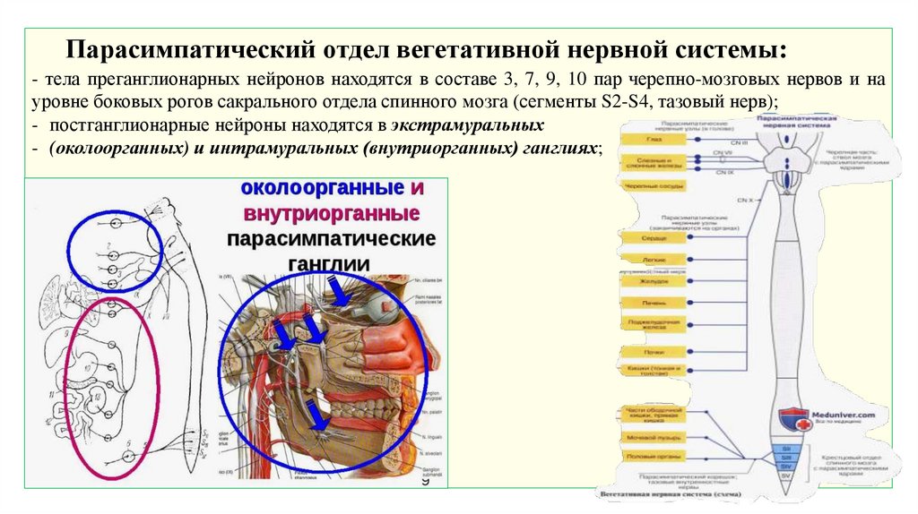 - (околоорганных) и интрамуральных (внутриорганных) ганглиях;